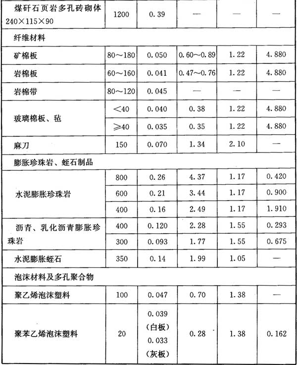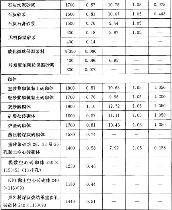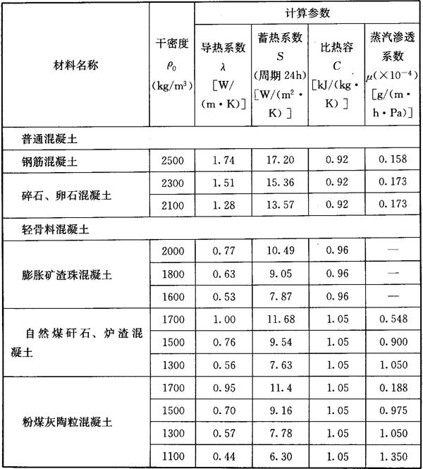 注:1 围护结构在正常使用条件下,材料的热物理性能计算参数应按本表直接采用;