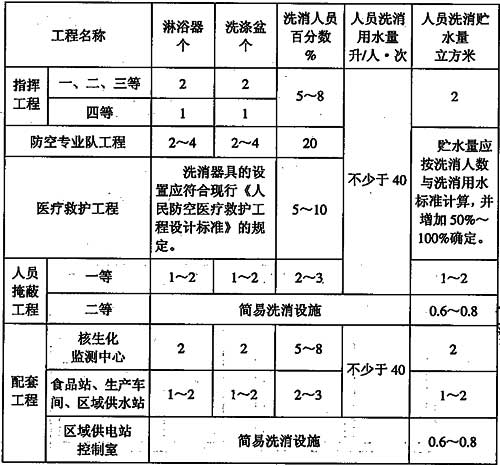 6.1.1 人防工程人员洗消各项指标应符合表6.1.1规定。