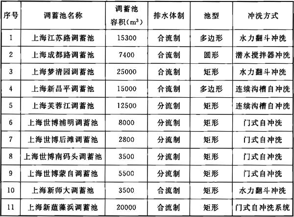 表6 上海已建调蓄池冲洗方式