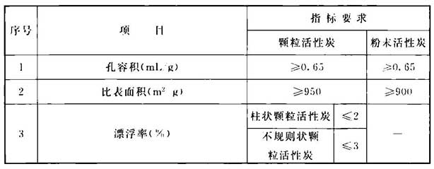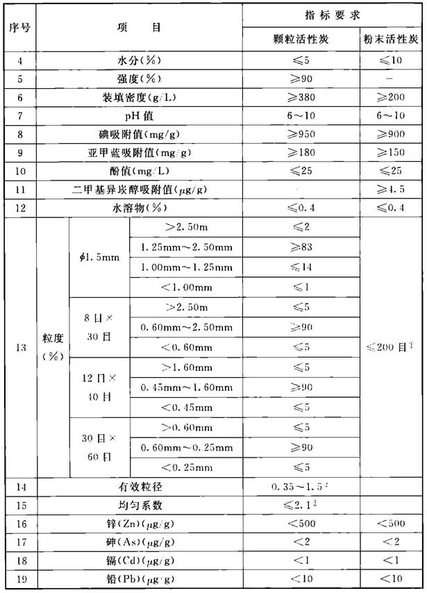 ②适用于降流式固定床使用的不规则状颗粒活性炭。