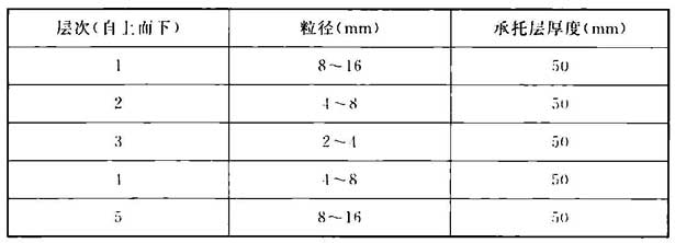 表16 滤砖承托层粒径级配(五层)