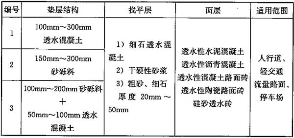 表12 透水铺装地面的结构形式