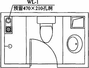 3.3.4 本条规定针对设置有专用通气立管的WAB排水系统,在确定排水立管和通气立管位置时,应注意通气立管的位置不能妨碍排水支管的布置,一般将通气立管布置在靠近墙角处。