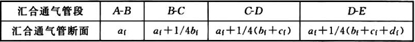 4.7.18 汇合通气管系指连接排水立管顶部通气管的横向管道。2根及2根以上汇合通气立管再汇合时也应按污水立管的通气立管断面积计算,避免汇合通气管的断面积重复计算。计算见图3、表4。