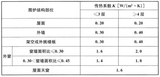 4.2.2 根据建筑物所处城市的气候分区区属不同,建筑内围护结构的传热系数不应大于表4.2.2-1规定的限值;寒冷B区(2B区)夏季外窗太阳得热系数不应大于表4.2.2-2规定的限值,夏季天窗的太阳得热系数不应大于0.45。