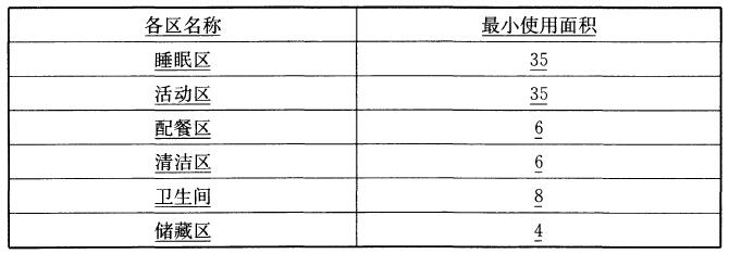 注:睡眠区与活动区合用时,其使用面积不应小于50m2。