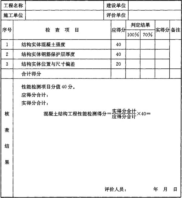 表5.1.1 混凝土结构工程性能检测项目及评分