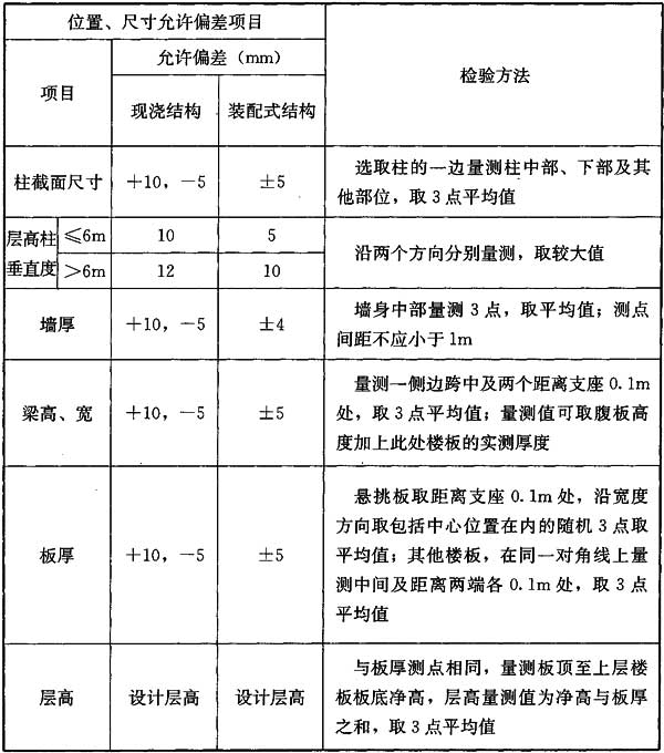 表5.1.2-2 结构实体位置与尺寸偏差检验项目及检验方法