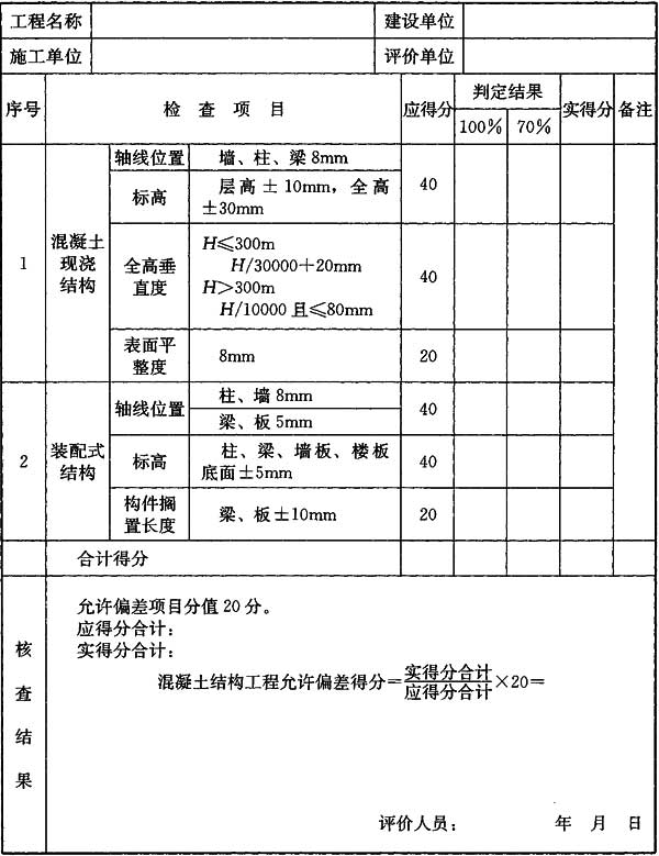 5.1.5 混凝土结构工程允许偏差项目及评分应符合表5.1.5的规定。