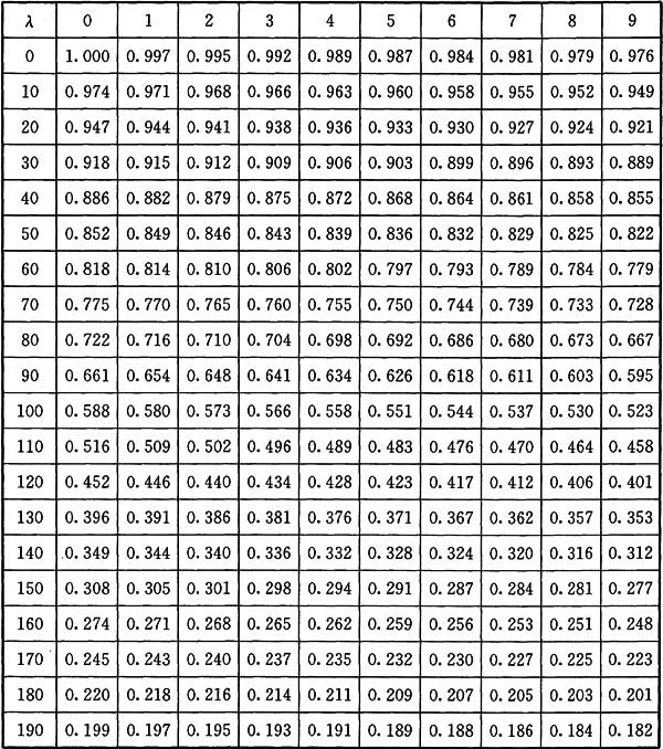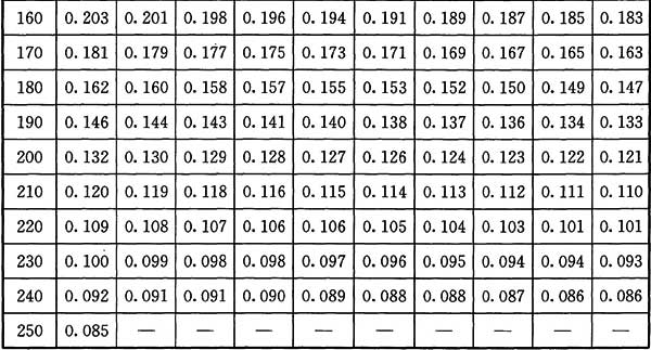 附录C 钢管轴心受压稳定系数 C.0.1 Q235钢管轴心受压构件的稳定系数φ应按表C.0.1采用。 表C.0.1 Q235钢管轴心受压构件的稳定系数φ C.0.2 Q345钢管轴心受压构件的稳定系数φ应按表C.0.2采用。 表C.0.2 Q345钢管轴心受压构件的稳定系数φ