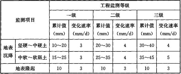 2 本表中工程监测等级参考国家标准《城市轨道交通工程监测技术规范》GB 50911-2013第3.3.5条规定划分,可根据当地经验结合地质条件进行调整。