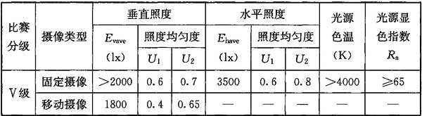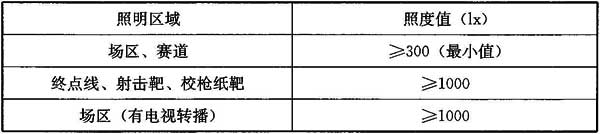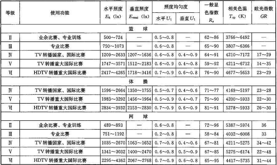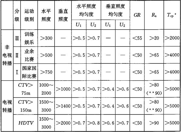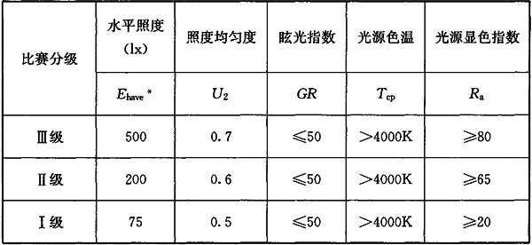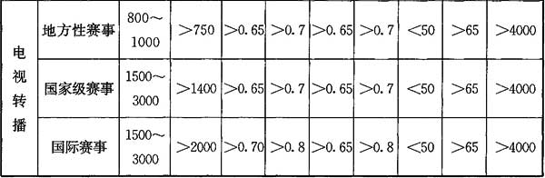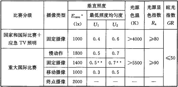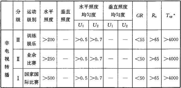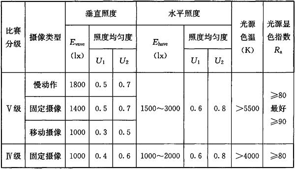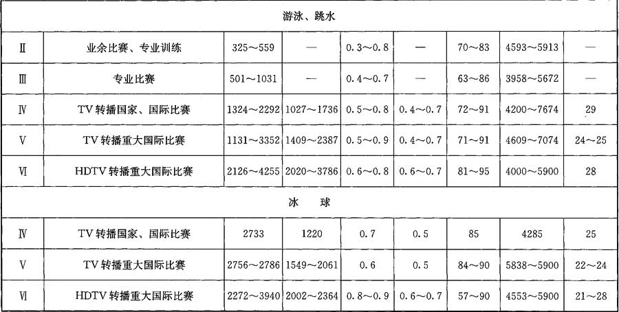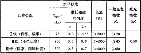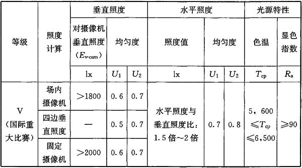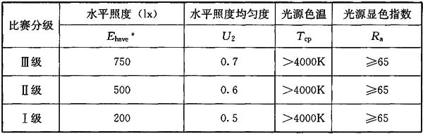 注:当有电视转播时,照明尚应满足电视转播要求。