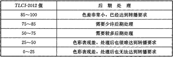表25 光源TLCI-2012数值与后期处理之间的关系