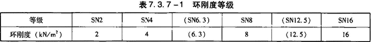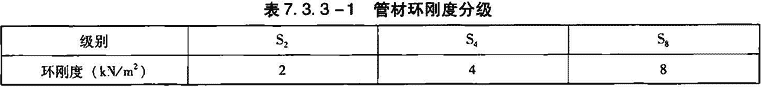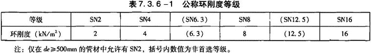 2)分类:管材按环刚度区分等级,见表7.3.6-1。按管材形状可分为带扩口管材和不带扩口管材。
