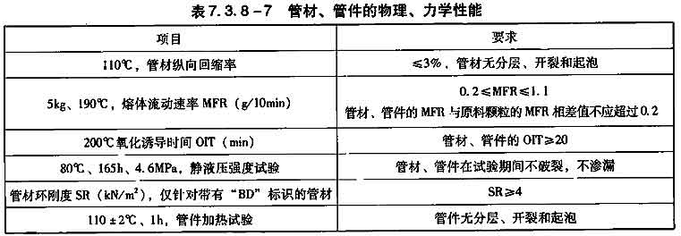 7)管材、管件的物理及力学性能应满足表7.3.8-7的规定要求,燃料毒性指数值不大于1。
