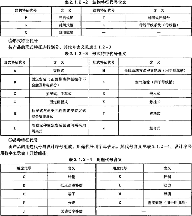 按产品的结构特征进行划分,其代号含义见表2.1.2-2。