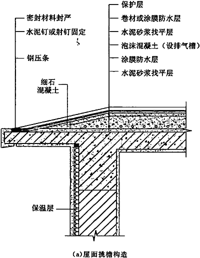 图4.3.5 屋面挑檐、女儿墙、变形缝构造示意图