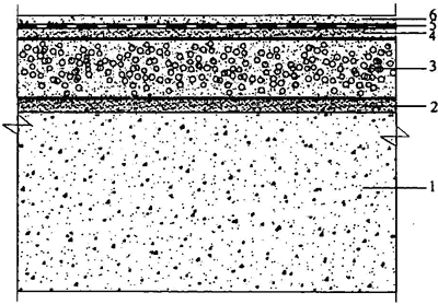 1-基层屋面;2-隔汽层;3-泡沫混凝土保温层;4-砂浆找平层;5-防水层;6-保护层