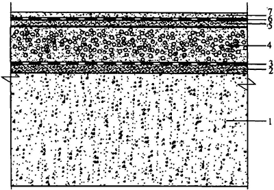 1-基层屋面;2-砂浆找平层;3-防水层;4-泡沫混凝土保温层;5-砂浆找平层;6-防水层;7-保护层