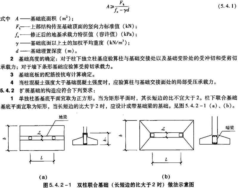 1 根据地基承载力计算基底面积,可按式(5.4.1)计算。