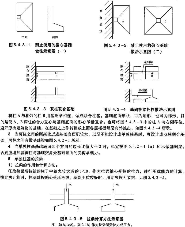 图5.4.3—1及图5.4.3—2中A所示的偏心基础,禁止使用。解决方法可如图5.4.3—3及图5.4.3—4所示。