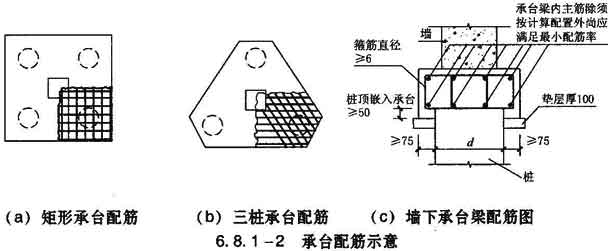 6.8.1 桩基承台的构造,除满足抗冲切、抗剪切、抗弯承载力和上部结构的连接及与桩、承台连系梁连接要求外,尚应符合下列要求: