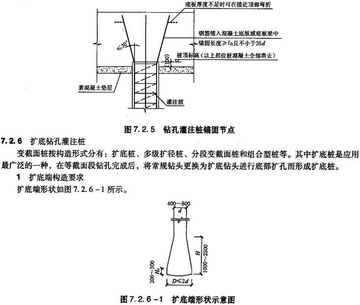 5 钻孔灌注桩锚固节点如图7.2.5所示。