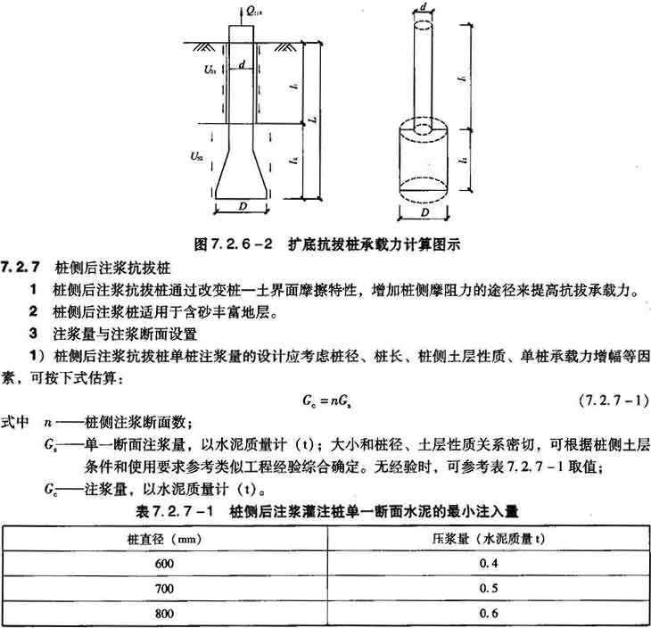 3 扩底桩承载力计算图示如图7.2.6—2所示,具体承载力计算公式见第7.2.2条抗拔桩承载力计算公式。