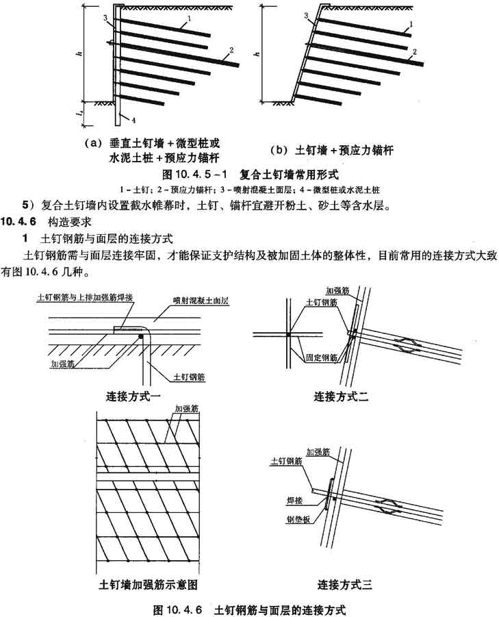 4)土钉墙、预应力锚杆的组合[图10.4.5(b)]。