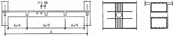 ①孔洞应尽可能设置于剪力较小的跨中L/2区域内,孔洞偏心宜偏向受拉区,偏心距e0不宜大于0.05h;