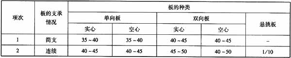 注:1 L为板的短边计算跨度;无梁楼盖中L为板的长边计算跨度;