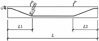 折线形预应力筋的转折点L1、L2至支座的距离不宜小于梁跨度L的1/5,转折点处预应力筋宜尽量平滑过渡,避免硬弯折;在预应力筋弯折处,应加密箍筋或沿弯折处内侧设置钢筋网片。