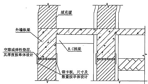 2 ≤7度抗震设防地区,包括建筑场地类别Ⅰ、Ⅱ类及中低档装修的框架(含框剪)结构,可采用填充墙与框架柱脱开但仍有水平钢筋连接的构造方案。