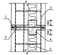 1—主筋;2—拉筋;3—钢筋网片;4—填实砂浆;5—保温层
