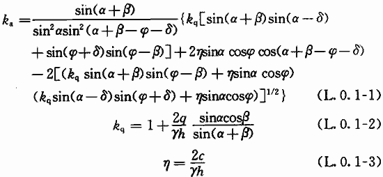 L.0.1 挡土墙在土压力作用下,其主动压力系数应按下列公式计算:
