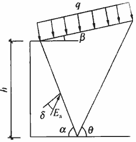 式中:q——地表均布荷载(kPa),以单位水平投影面上的荷载强度计算。