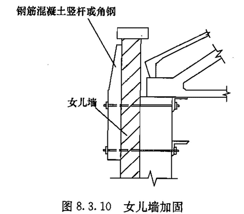 8.3.10 封檐墙、女儿墙的加固,应符合下列要求: