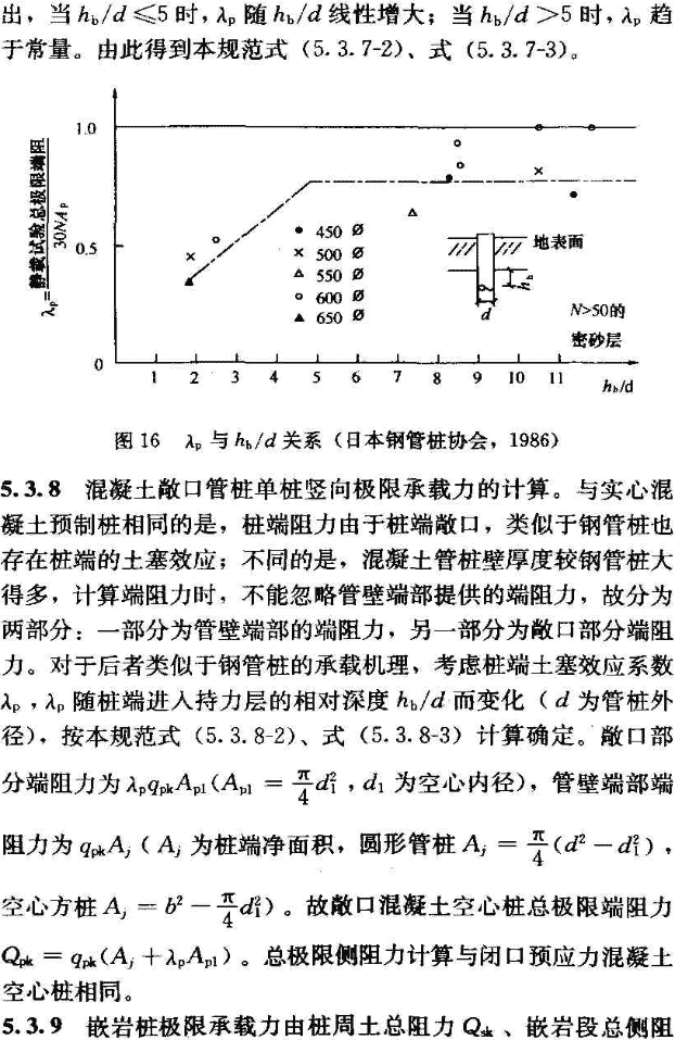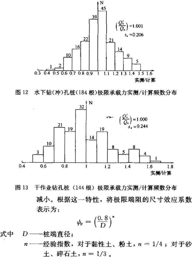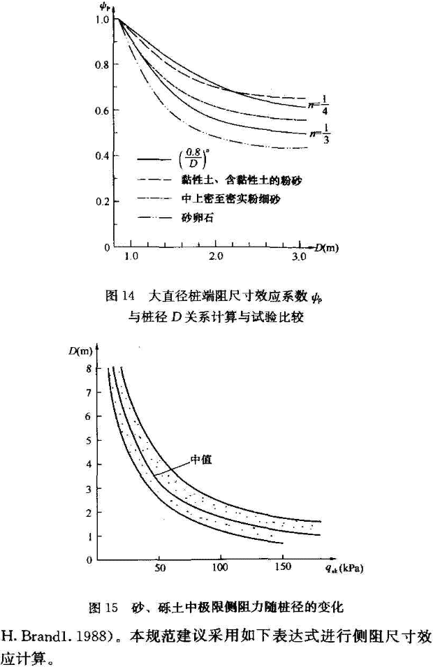 5.3.6 本条说明关于大直径桩(d≥800mm)极限侧阻力和极限端阻力的尺寸效应。